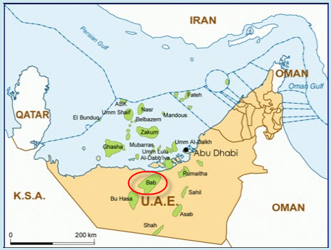 Bab is part of these sour gas fields in Abu Dhabi with Shah and Hail to contain a high percentage of hydrogen sulphide and carbon dioxide (CO2).