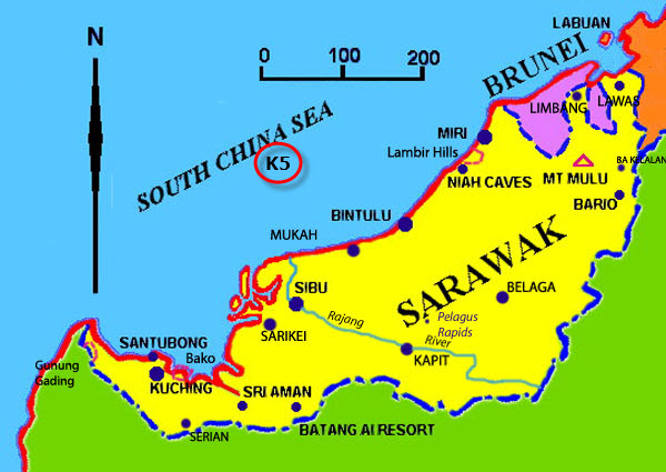 Discovered in 1970, the K5 gas field is located 230 kilometers northwest Bintulu, in 80 meters of water depth.
